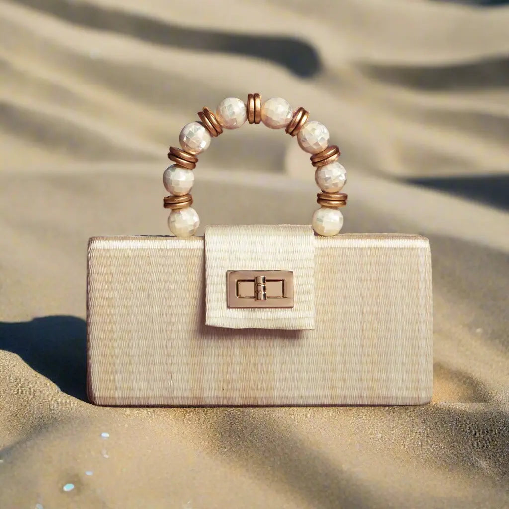 Mother of Pearl Shell Inlay Bead Handle handbag clutch in natural