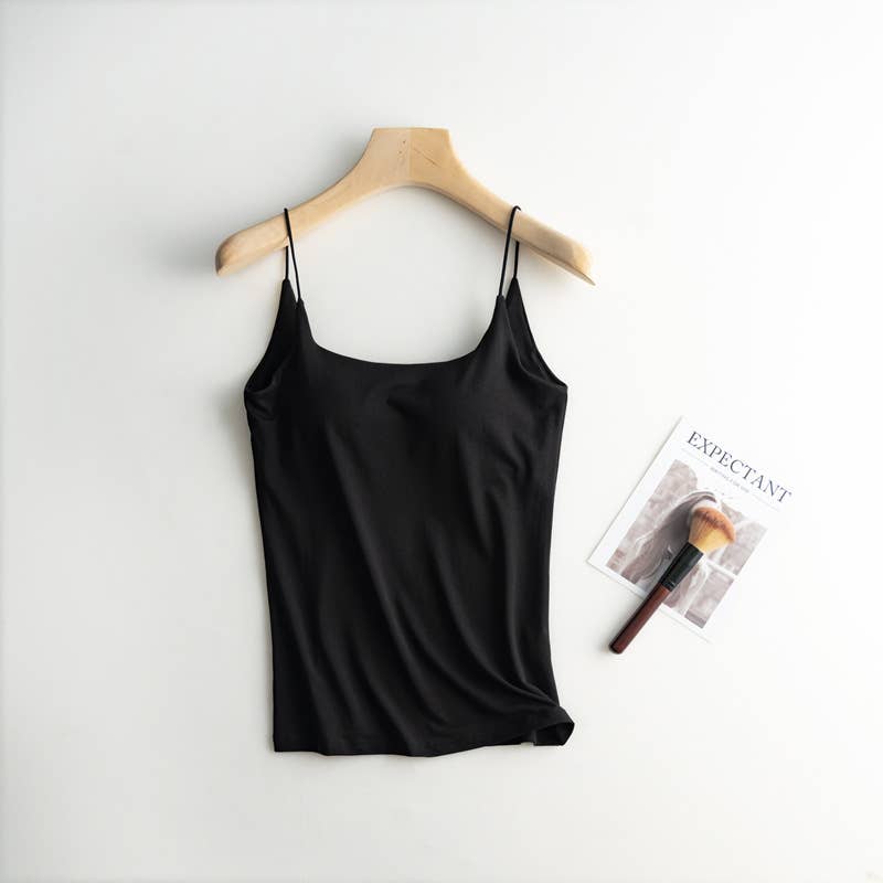 cotton blend camisole essential basic self bra tank top ,Spoon neck tank top ,built in bra ,summer tank top ,Leisure ,casual ,laid back ,easy cozy ,chill _RCJY04294