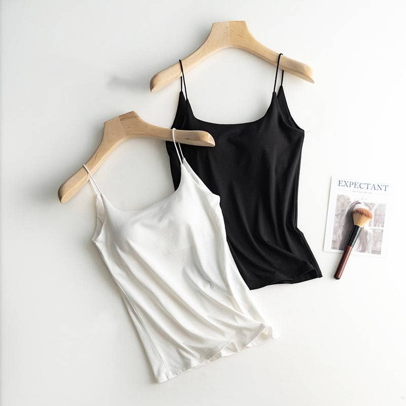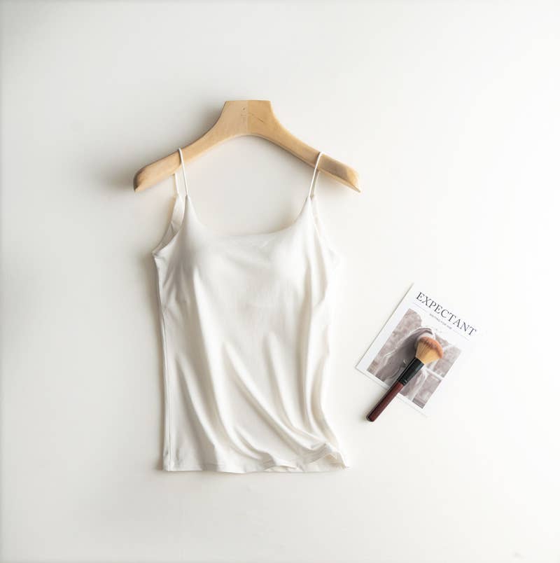 Cotton blend camisole daily regular basic self bra tank top: White
